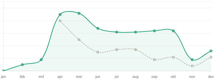 Since joining Campercontact, Urban Gardens has seen consistent growth in bookings year over year. Bookable locations get more visibility on the platform — and that shows. The chart below compares 2024 with 2025.